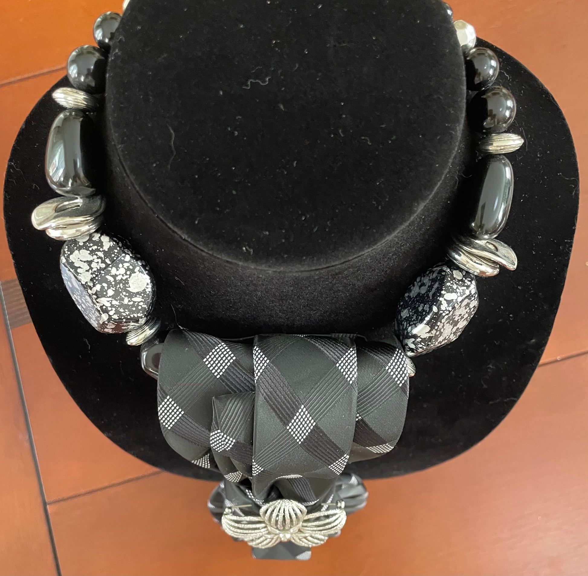 Black & Silver Versatile Vintage necktie necklace
